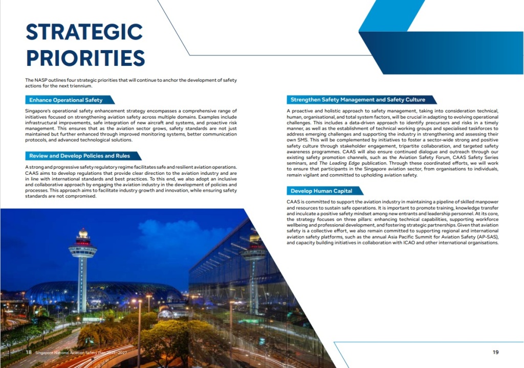 Nhằm giải quyết những thách thức này, Kế hoạch an toàn hàng không quốc gia Singapore đề ra 45 hành động mà ngành hàng không cần thực hiện, thuộc 4 nội dung ưu tiên: