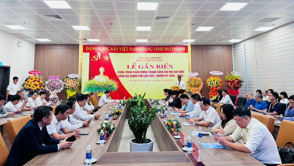 Tại buổi lễ, các đại biểu đã nghe công bố quyết định chung của Đảng ủy Chính phủ về việc công nhận 03 công trình chào mừng Đại hội, bao gồm Trung tâm ATCC/HCM của VATM và 02 công trình trọng điểm của Ban Quản lý dự án Mỹ Thuận.