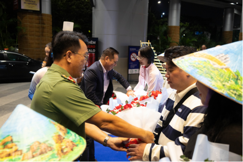 sôi động, trong khi hành khách được tặng đèn lồng, nón lá và ấn phẩm du lịch –