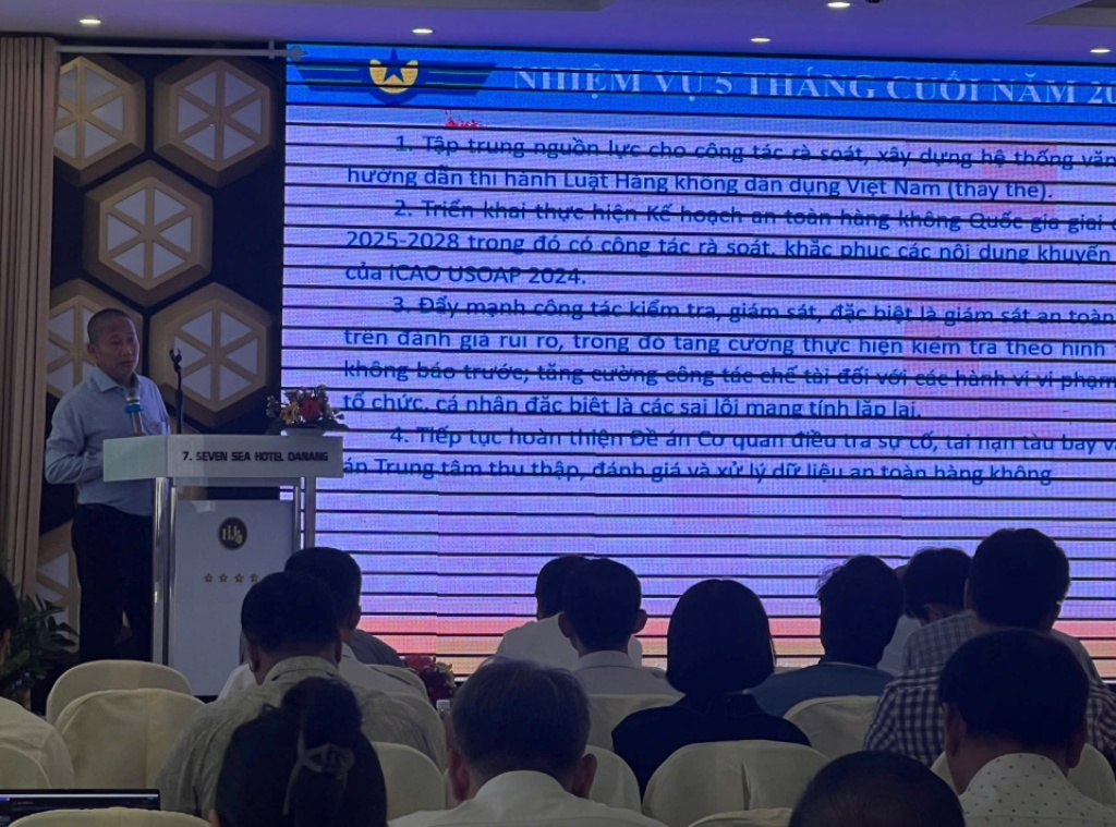 Tại Hội nghị, lãnh đạo Phòng Tiêu chuẩn An toàn bay trình bày báo cáo trung tâm. Trong 7 tháng đầu năm 2025, ngành hàng không Việt Nam tuy còn tồn tại một số khó khăn liên quan đến việc sụt giảm đội tàu bay do ảnh hưởng bởi nguồn cung động cơ của nhà máy sản xuất PW và những ảnh hưởng tiêu cực của sự bất ổn chính trị, xung đột quân sự đang diễn ra trên thế giới, tuy nhiên hoạt động khai thác của các hãng hàng không Việt Nam được ghi nhận tiếp tục tăng trưởng.