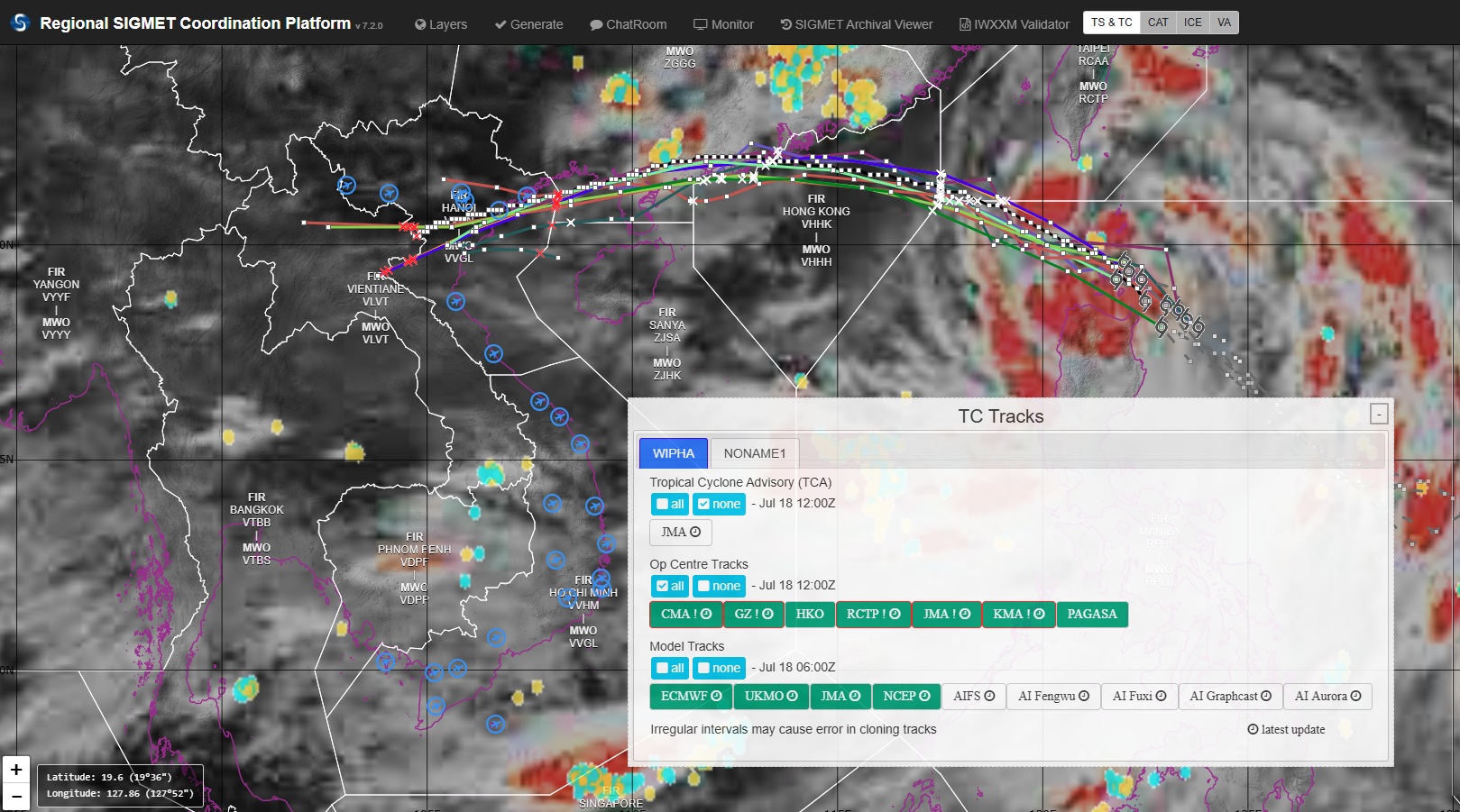 (Bản đồ dự báo quỹ đạo bão WIPHA của 11 Trung tâm dự báo khu vực và toàn cầu (Nguồn: vatm.vn-Platform Hài hòa SIGMET của HKO).