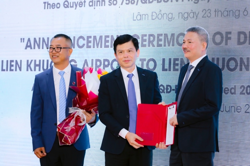 Tại buổi Lễ, Cục trưởng Cục HKVN Đinh Việt Thắng đọc quyết định của Bộ GTVT công bố chuyển cảng hàng không Liên Khương thành Cảng hàng không quốc tế. Thứ trưởng Bộ GTVT Lê Tuấn Anh đã trao quyết định cho Tổng công ty Cảng hàng không Việt Nam.