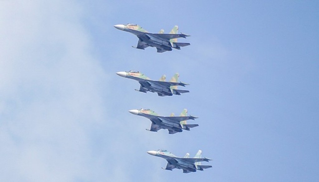trên nền Quốc thiều nước Cộng hòa Xã hội Chủ nghĩa Việt Nam; Không quân bay