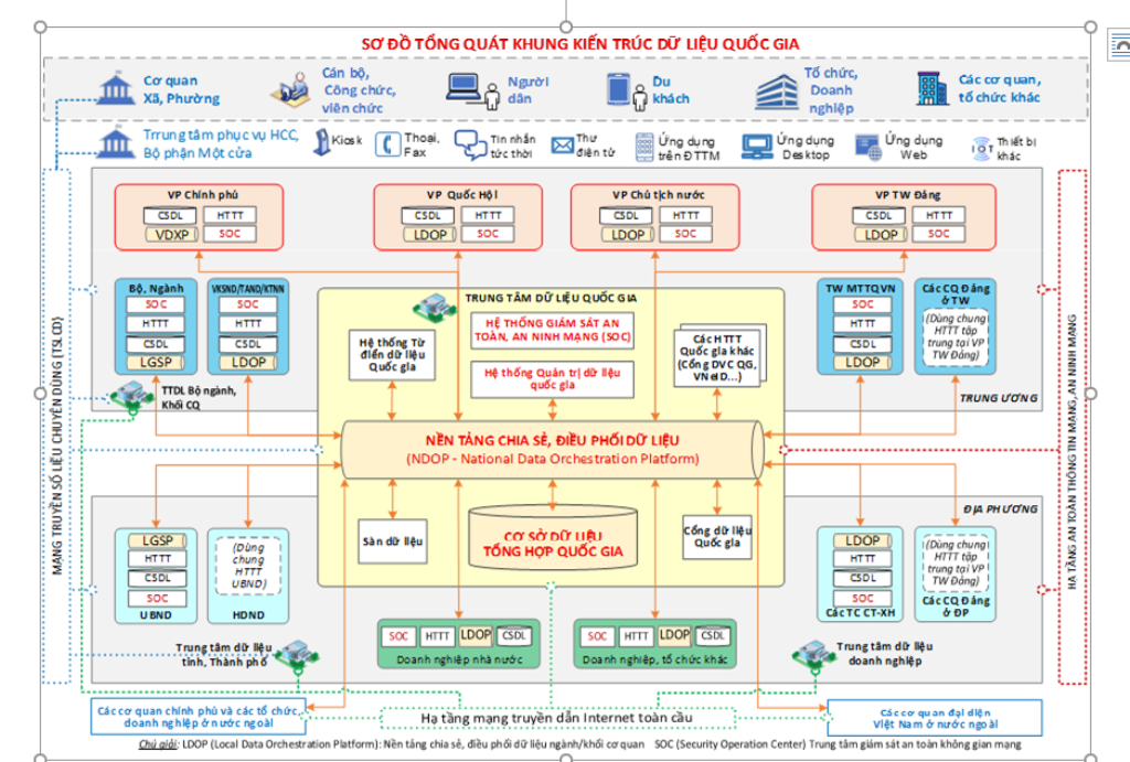 Khung kiến trúc dữ liệu quốc gia là hệ thống định hướng tổng thể về cấu trúc, phân tầng, tiêu chuẩn kỹ thuật và mô hình chia sẻ dữ liệu giữa các cơ sở dữ liệu quốc gia, chuyên ngành, địa phương và các hệ thống thông tin của các cơ quan trong hệ thống chính trị.