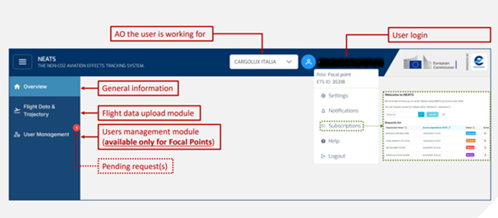 NEATS là kết quả của sự phối hợp chặt chẽ với các bên liên quan chính (các hãng hàng không, nhà sản xuất tàu bay và động cơ) và được hỗ trợ bởi To70, AerLabs, Cơ quan Khí tượng quốc gia Đức (DWD) và Trung tâm Hàng không vũ trụ Đức (DLR). Phối hợp với các cơ quan chức năng Thụy Sĩ, phiên bản này cũng bao gồm các chuyến bay được báo cáo theo Hệ thống Giao dịch phát thải của Thụy Sĩ.