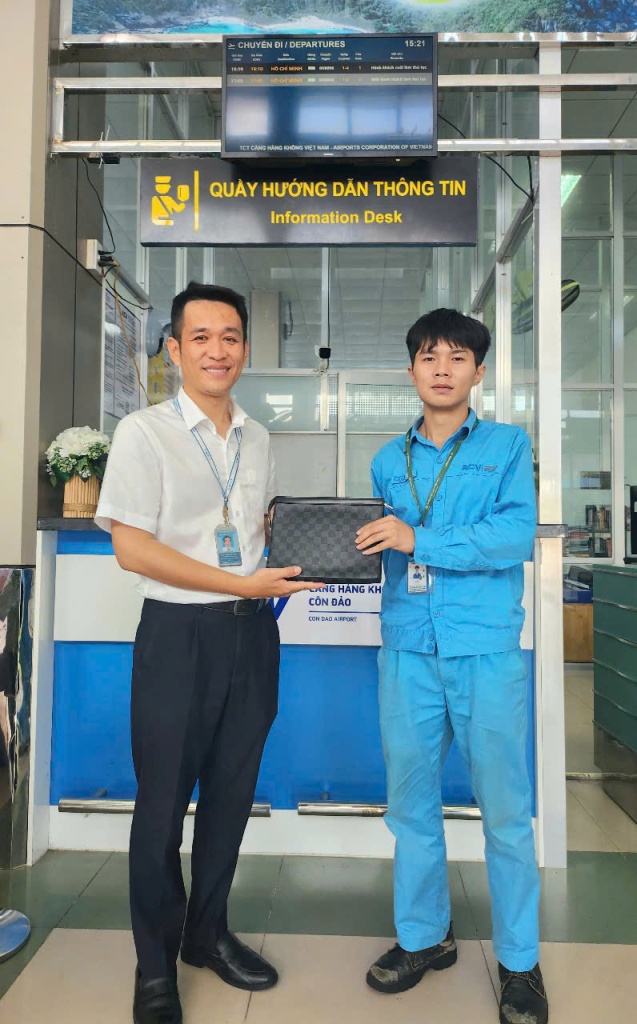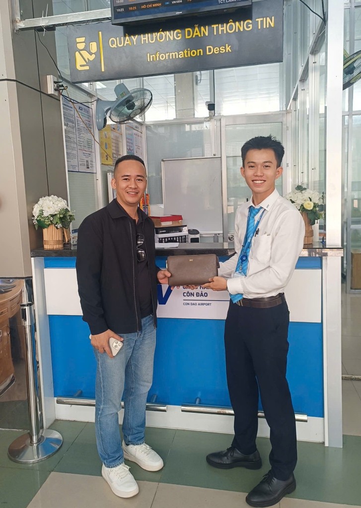 Tiếp đó, vào ngày 14/04/2025, trên xe trung chuyển hành khách chuyến bay VN1857, ông Trần Viết Cường - Nhân viên Phục vụ hành khách đã nhặt được 01 ví cầm tay màu nâu có hơn 56 triệu đồng, 1 điện thoại và giấy tờ tùy thân. Sau khi nhận được thông tin, Cảng hàng không Côn Đảo đã phối hợp với đại diện hãng hàng không VASCO thực hiện các thủ tục kiểm tra, bàn giao tài sản và giấy tờ của hành khách theo quy định.