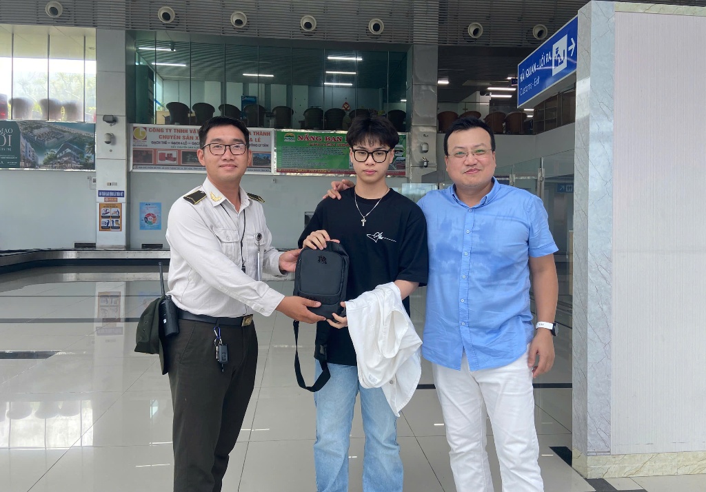 Đến khoảng 14h45' cùng ngày, sau khi tiếp nhận trình báo của một hành khách trên chuyến bay VN1651 (HAN-TBB), về việc để quên túi xách bên trong có tài sản có giá trị. Bằng các biện pháp nghiệp vụ, sau khi kiểm tra, xác minh, lực lượng an ninh đã trao trả lại chiếc túi đầy đủ nguyên vẹn cho hành khách trên.