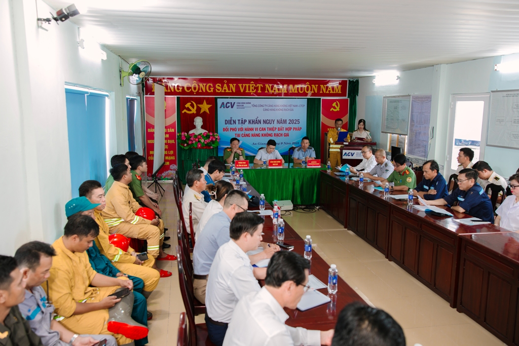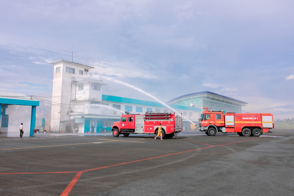 sẵn sàng ứng phó khẩn nguy của lực lượng Cảng hàng không Rạch Giá, đáp ứng yêu