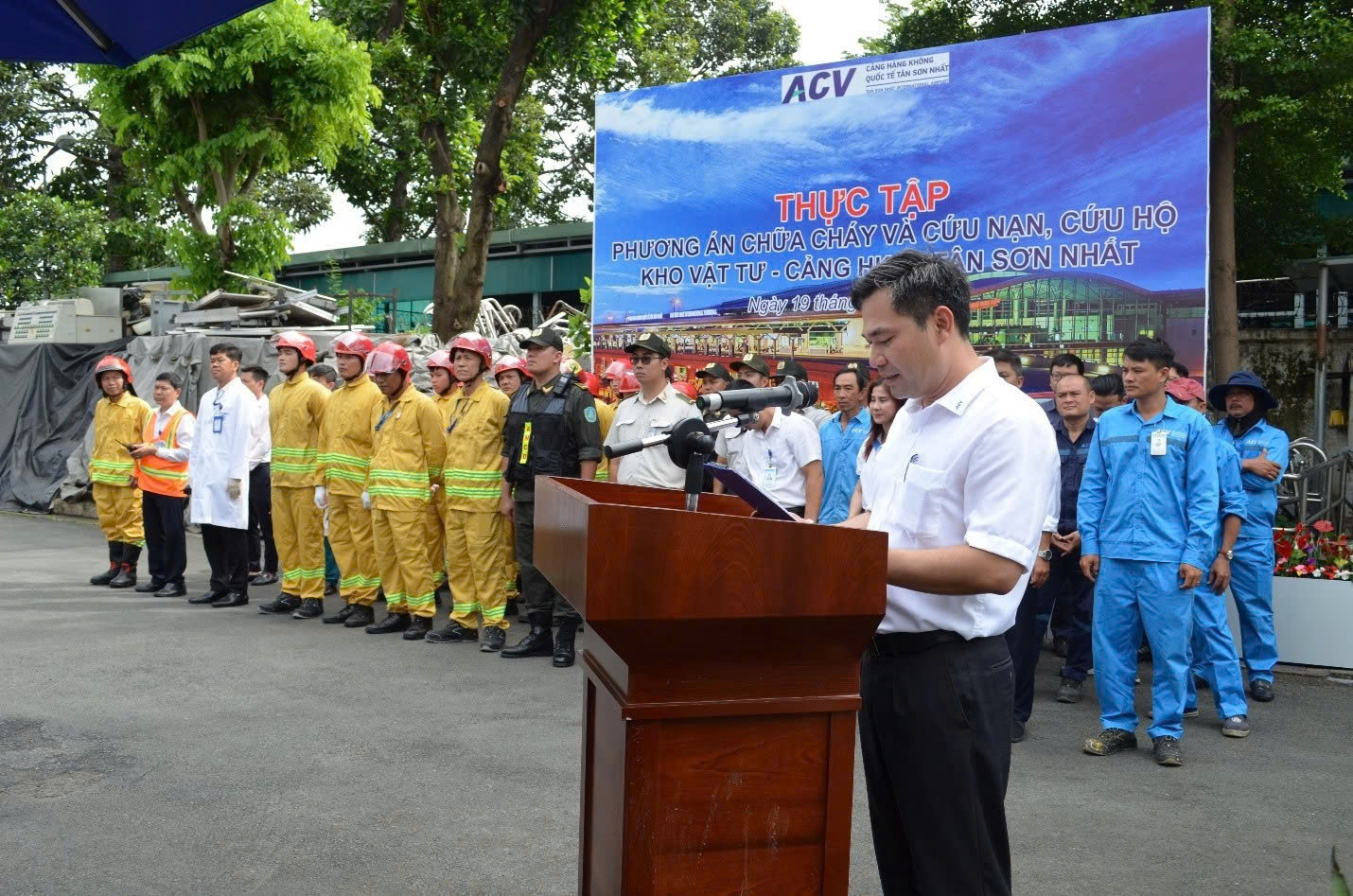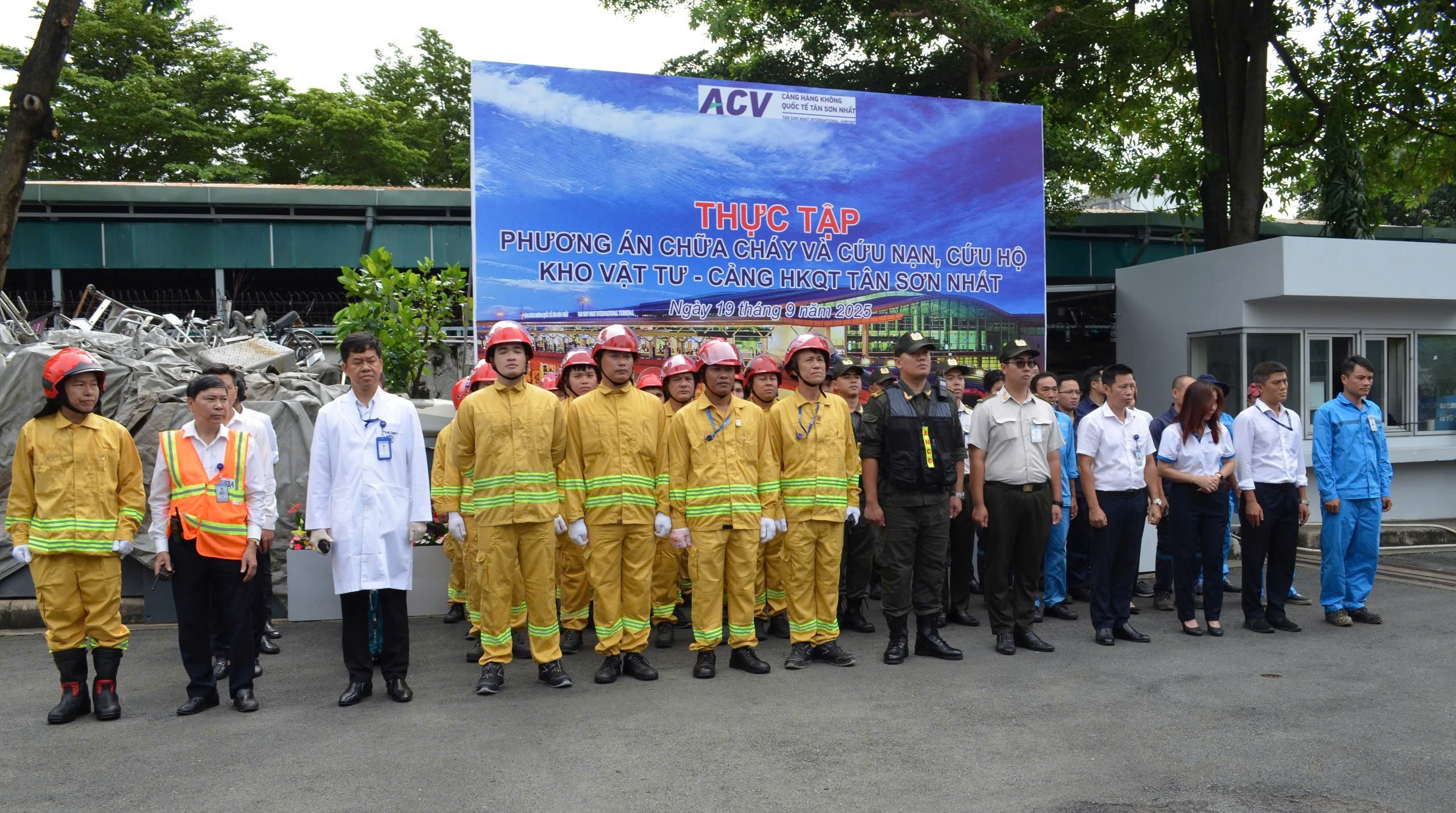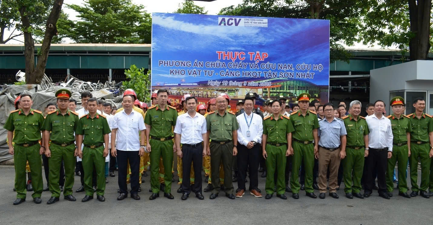 Tham dự chương trình có Ông Nguyễn Toàn Đắc - Phó Giám đốc Cảng, Trưởng Ban Chỉ đạo diễn tập năm 2025; đồng chí Thượng Tá Bùi Trung Hiếu - Phó Trưởng phòng Cảnh sát PCCC&CNCH Công an Tp. Hồ Chí Minh; đại diện Cảng vụ hàng không Miền Nam, các cơ quan chức năng cùng nhiều đơn vị hàng không và phi hàng không đang hoạt động tại Cảng HKQT Tân Sơn Nhất.