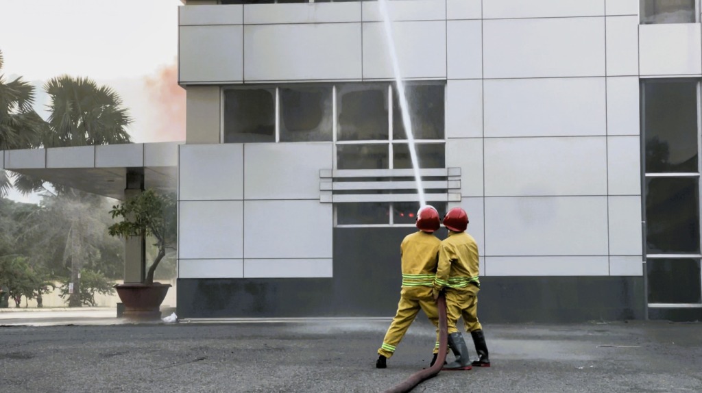 Tình huống giả định được đặt ra là một cơn bão lớn đổ bộ trực tiếp vào Côn Đảo. Cảng hàng không Côn Đảo đã triển khai các biện pháp ứng phó ban đầu như chặn mái, chặn cửa để hạn chế thiệt hại. Tuy nhiên do mưa lớn kèm gió mạnh đã làm bể kính nhà ga khiến nước tràn vào khu vực kinh doanh dịch vụ ăn uống gây chập điện, dẫn đến cháy và mất điện cục bộ. Ngay lập tức, các lực lượng đã được huy động khẩn cấp để triển khai phương án chữa cháy, cứu hộ người bị nạn và khắc phục hậu quả.