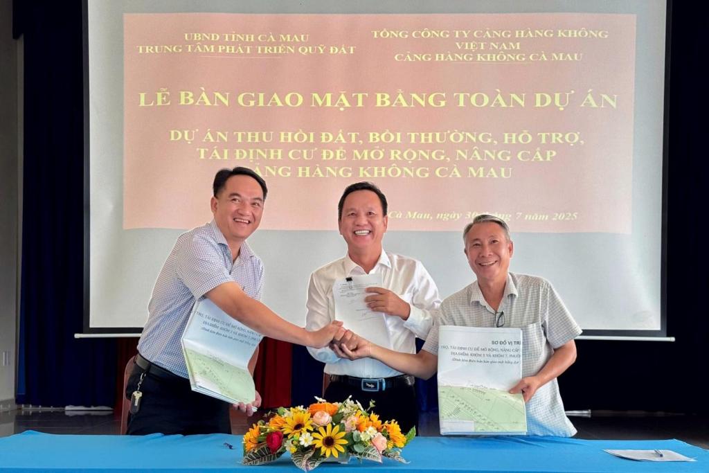 Tham dự Lễ bàn giao có đại diện Cảng hàng không Cà Mau, Trung tâm Phát triển quỹ đất tỉnh Cà Mau và UBND phường Tân Thành. Ngay sau ngày 30/7, các đơn vị sẽ khẩn trương bắt tay vào thi công đường cất hạ cánh mới, xây dựng nhà ga hành khách và các hạng mục phụ trợ đồng bộ.